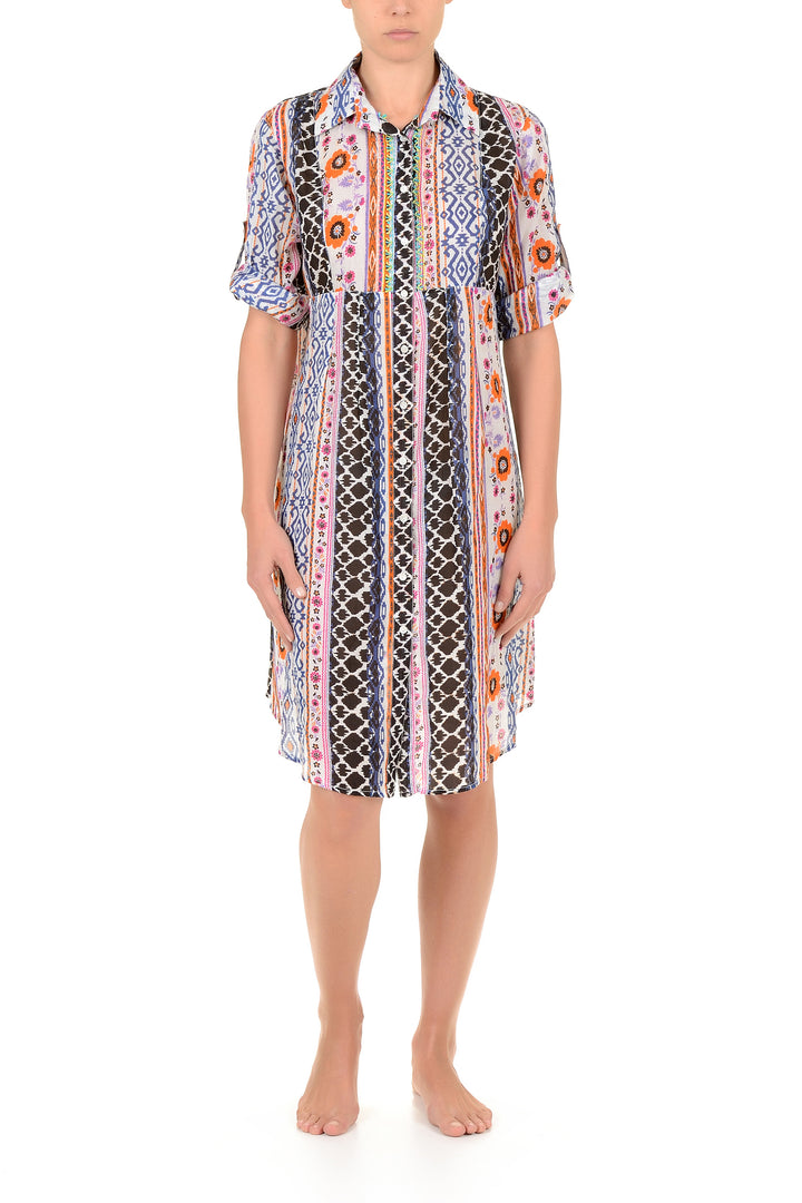 Este vestido camisa presenta un cierre frontal clásico con botones y está hecho de algodón puro. El material natural garantiza transpirabilidad y comodidad, convirtiéndolo en la elección ideal para una elegancia diaria. Diseñado para ser versátil, combina estilo sin esfuerzo y practicidad.