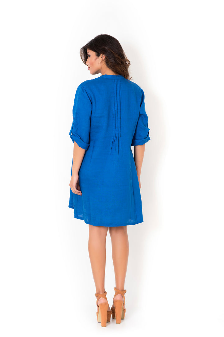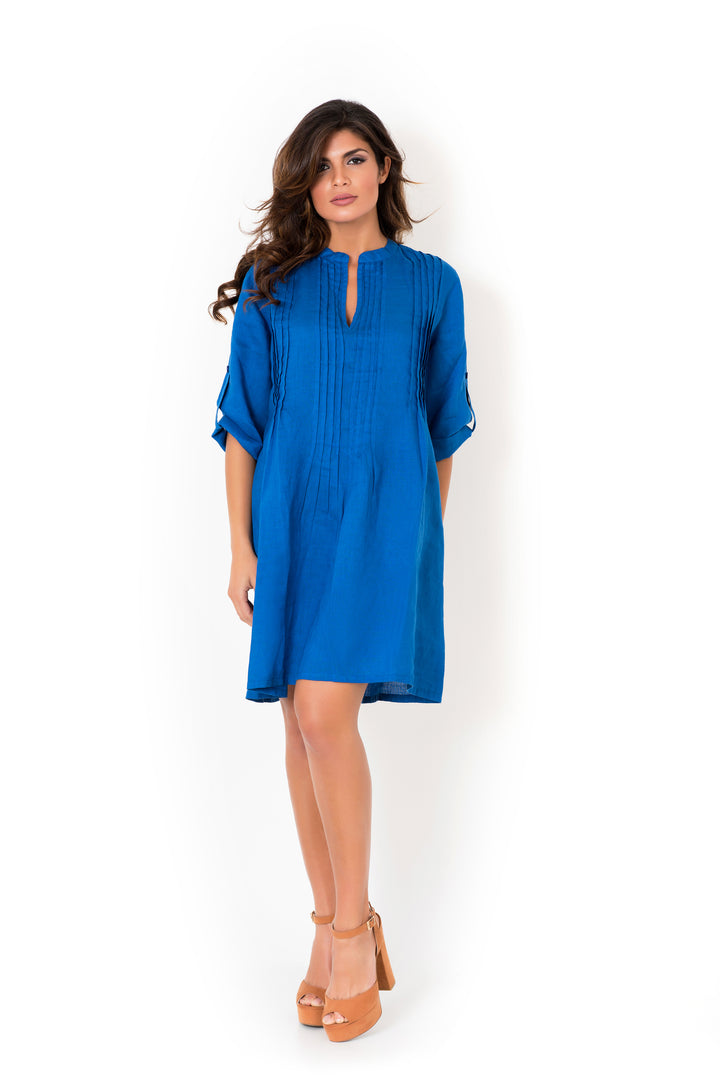 Este elegante vestido chemisier presenta mangas tres cuartos, combinando el corte clásico con un ajuste cómodo. Su diseño versátil lo hace adecuado tanto para contextos profesionales como para ocasiones informales, ofreciendo una silueta refinada y libertad de movimiento durante todo el día. Ideal para quienes buscan una prenda sofisticada pero práctica, indispensable en el guardarropa.