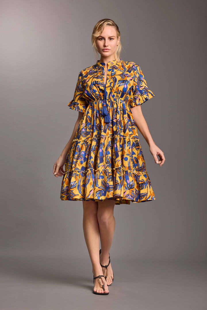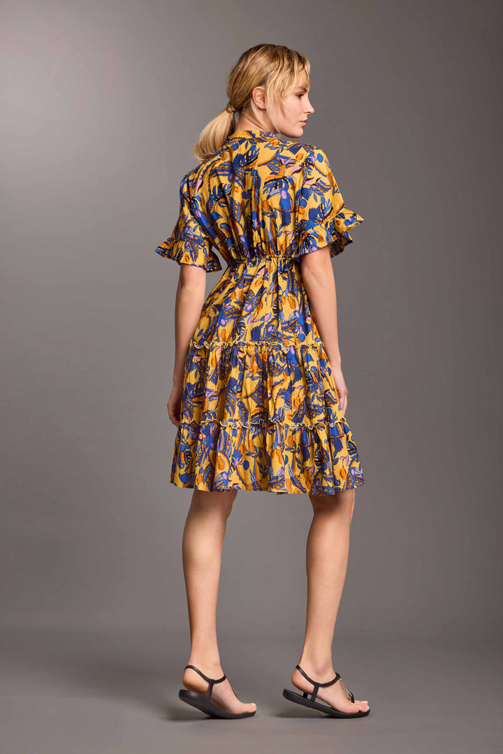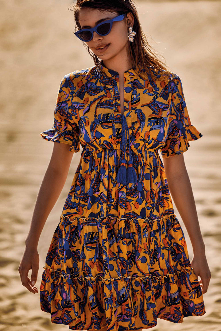 Elegante y moderno, el vestido Manila está hecho de suave viscosa y presenta un estampado tropical que lo hace perfecto para el verano. Con un ajuste fluido y mangas 3/4, este vestido con falda con volantes le dará a tu look un toque casual chic.