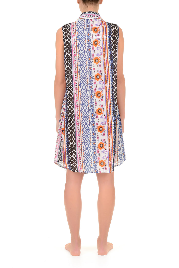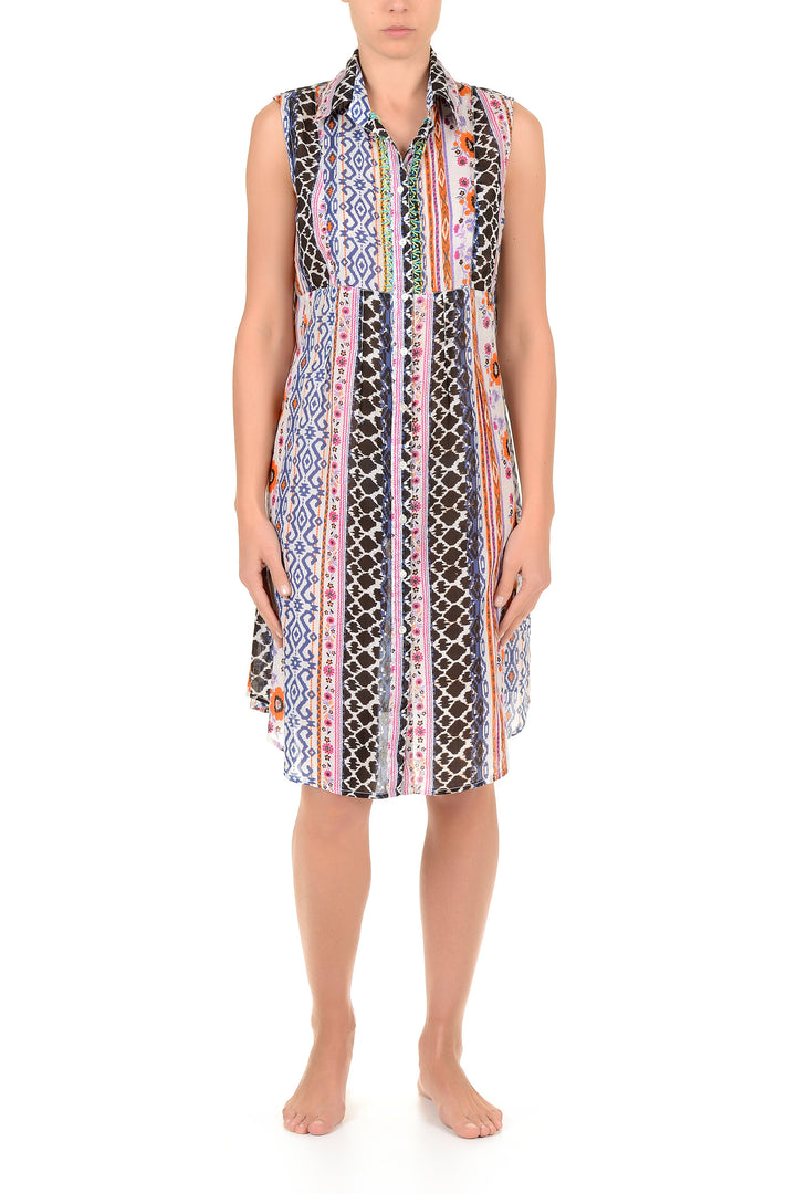 Este vestido camisa sin mangas, hecho de algodón puro, ofrece comodidad transpirable y un estilo sin esfuerzo. Caracterizado por un cierre frontal con botones, combina practicidad con un look limpio y sastre, perfecto para los días calurosos o para superponer con otras prendas. Ideal para quienes buscan una prenda versátil y de refinada simplicidad.