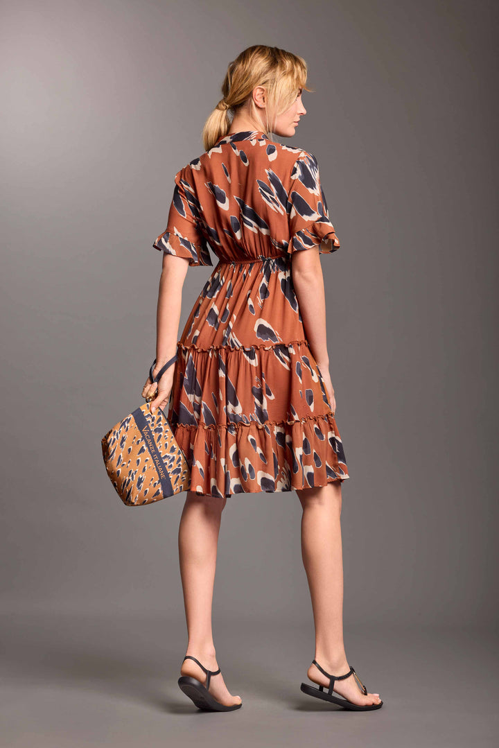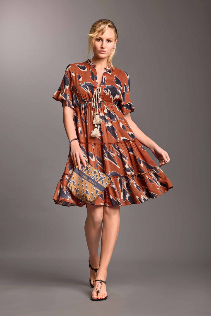 Con su tejido de viscosa transpirable y diseño casual y chic, el vestido camisa Zoe es ideal para un look de verano. Las mangas 3/4 y los volantes y el cordón en cintura lo hacen perfecto para cualquier ocasión, desde salidas informales hasta eventos especiales.