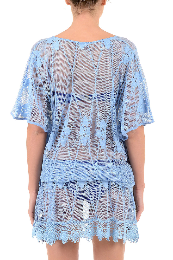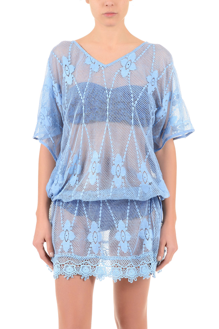 Este vestido de algodón puro combina comodidad y sofisticación gracias al escote en V y a los detalles de encaje y transparencias. El tono azul aporta frescura y versatilidad, perfecto para un look elegante y distintivo. Una prenda ideal para quienes buscan elegancia sin renunciar a la calidad de los materiales.