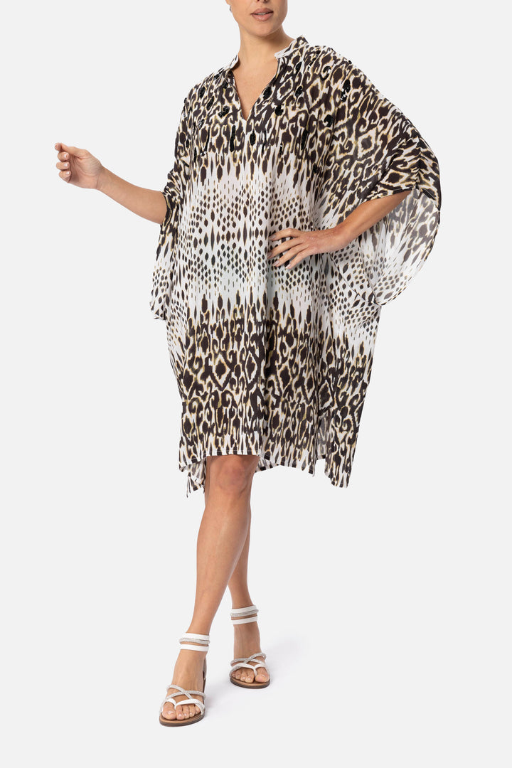 Lel vestido Kate es perfecto para los días de verano gracias a su ligereza y fluidez en viscosa. Las mangas de murciélago y el escote en V ofrecen un diseño moderno y vibrante. Ideal para un look fresco y a la moda para los cálidos días.