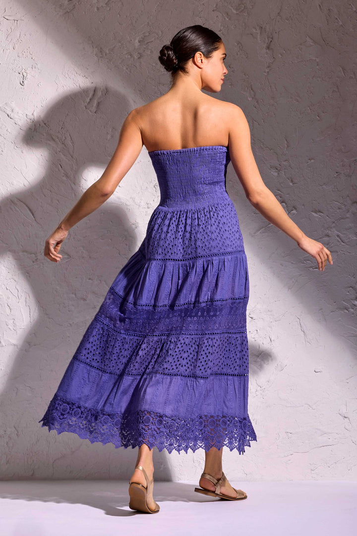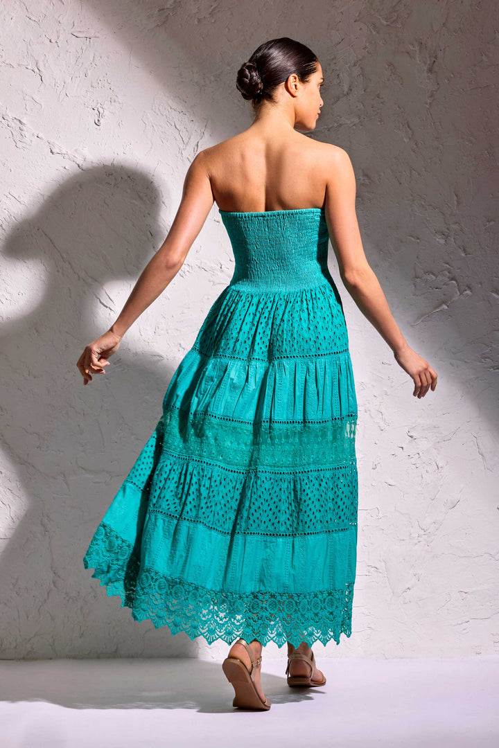 VESTIDO LARGO BANDEAU EN ENCAJE PARTENOPE