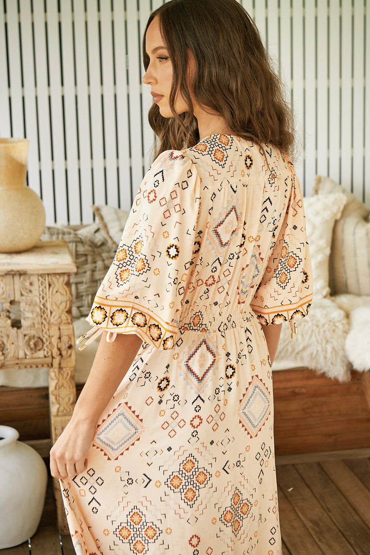 Realza tu elegancia con el vestido largo Elsie con aplicaciones de encaje. Las mangas abullonadas y el escote en pico realzan tu feminidad, mientras que el cordón en vita enfatiza tu silueta. El fantasia y la abertura lateral aportan un toque de refinamiento, mientras que la falda con incrustaciones de encaje aporta un toque de clase.