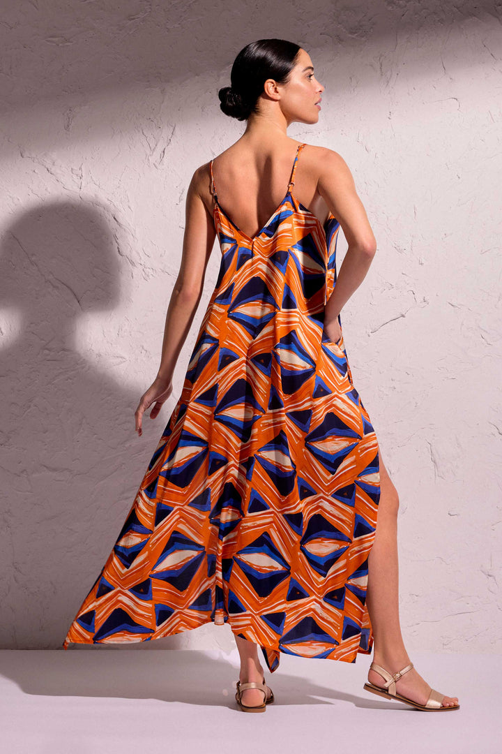 Con el vestido Charlotte, el aire veraniego se vuelve aún más agradable gracias a la suave tela de viscosa y modal. Perfecto para paseos o eventos casuales, el modelo largo con tirantes y una maxi estampado vibrante aporta un toque de ligereza y frescura a tu look. Con aberturas laterales para un andar fluido y cómodo.