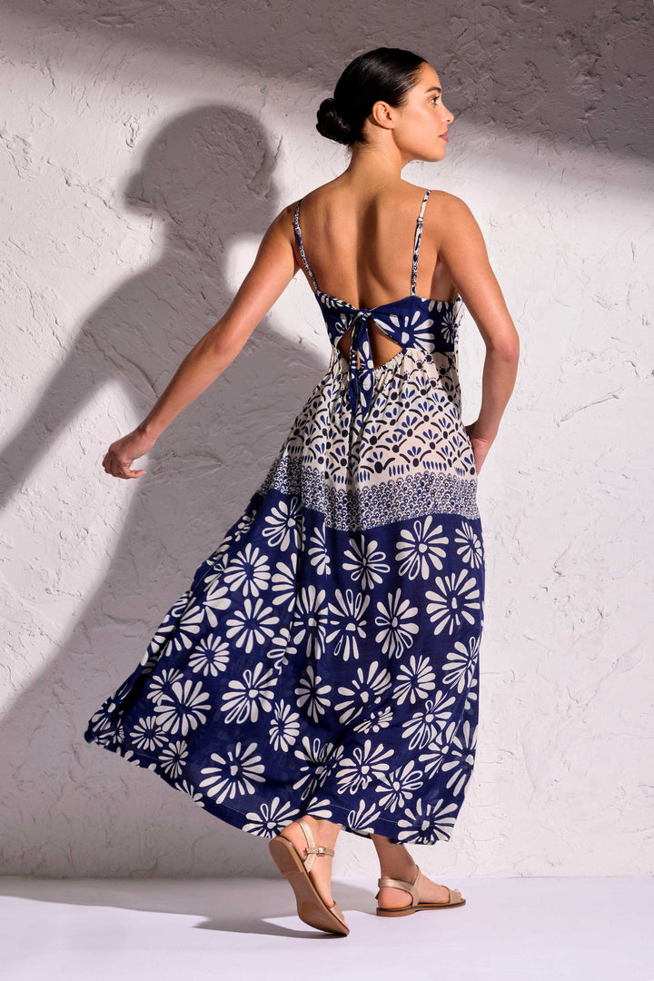 L' vestido largo con tirantes Muriel es la prenda perfecta para el verano con su diseño fresco y versátil. Hecho de una tela transpirable y ligera, asegura comodidad y frescura en cada situación, desde los días en la playa hasta eventos casuales. Su estampado floral de moda lo hace aún más elegante y a la última.