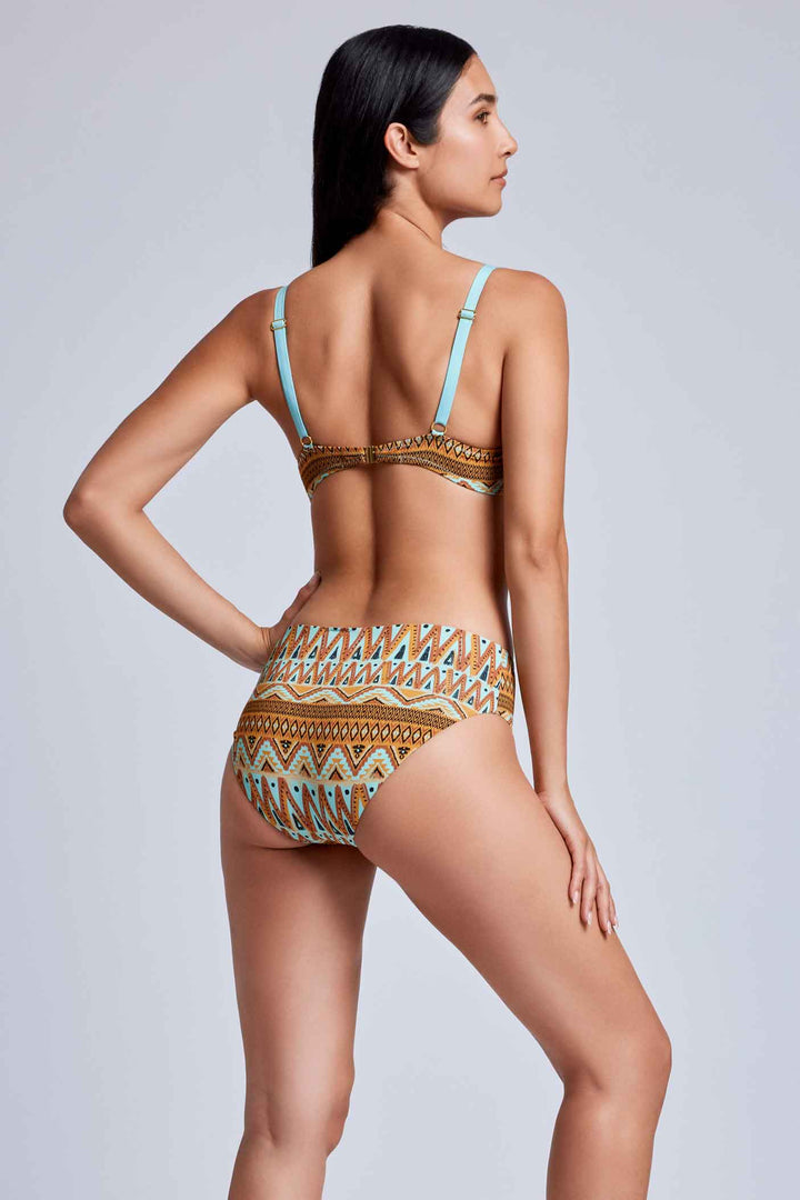 Este bikini con aros Marruecos ofrece una sujeción perfecta para tu cuerpo gracias a los aros y spalline ajustables. La braguita vita medio, en cambio, cubre y moldea tus curvas de la mejor manera posible. Disfruta del máximo confort y de una silueta perfecta con este bikini de calidad.