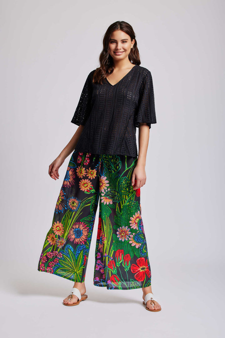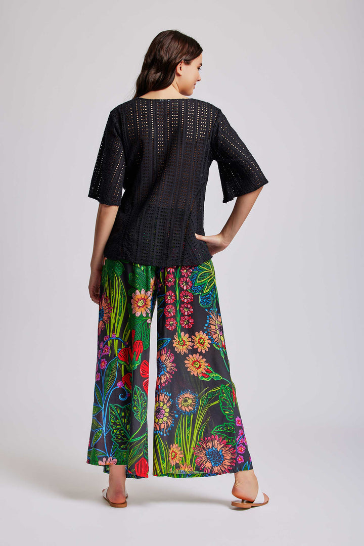 Este top de encaje de puro algodón aporta un toque de elegancia a tu armario. Las mangas anchas y el escote en pico añaden un toque de feminidad, mientras que el tejido de encaje garantiza suavidad y comodidad. Perfecto para cualquier ocasión, hace que este top sea imprescindible para toda mujer refinada.