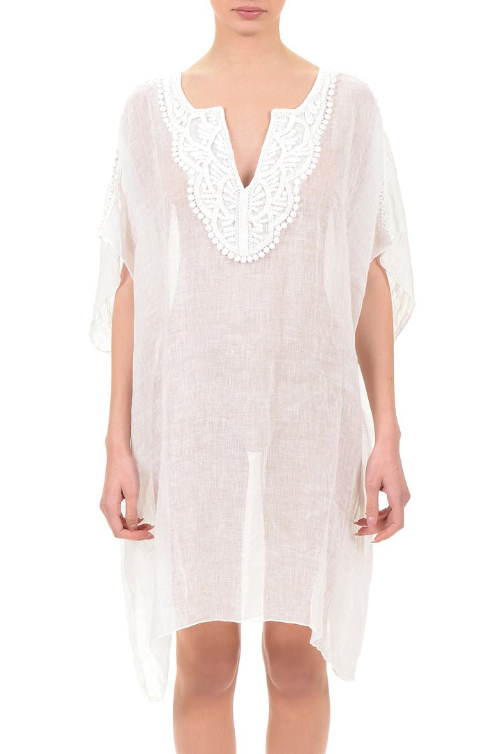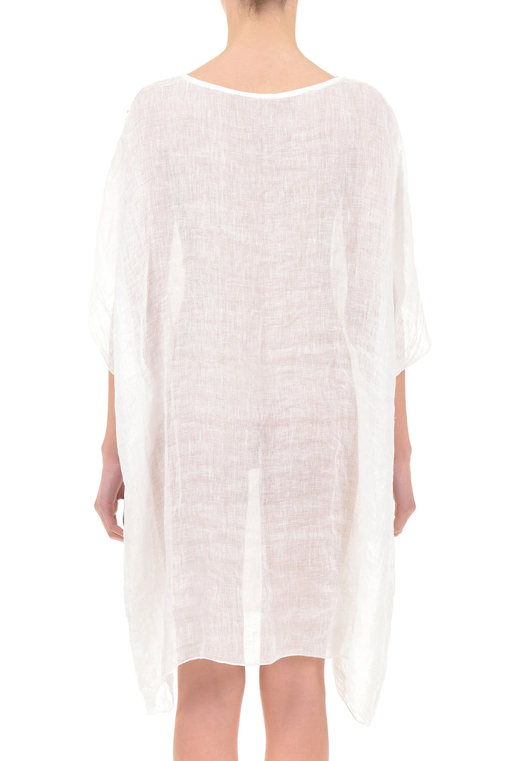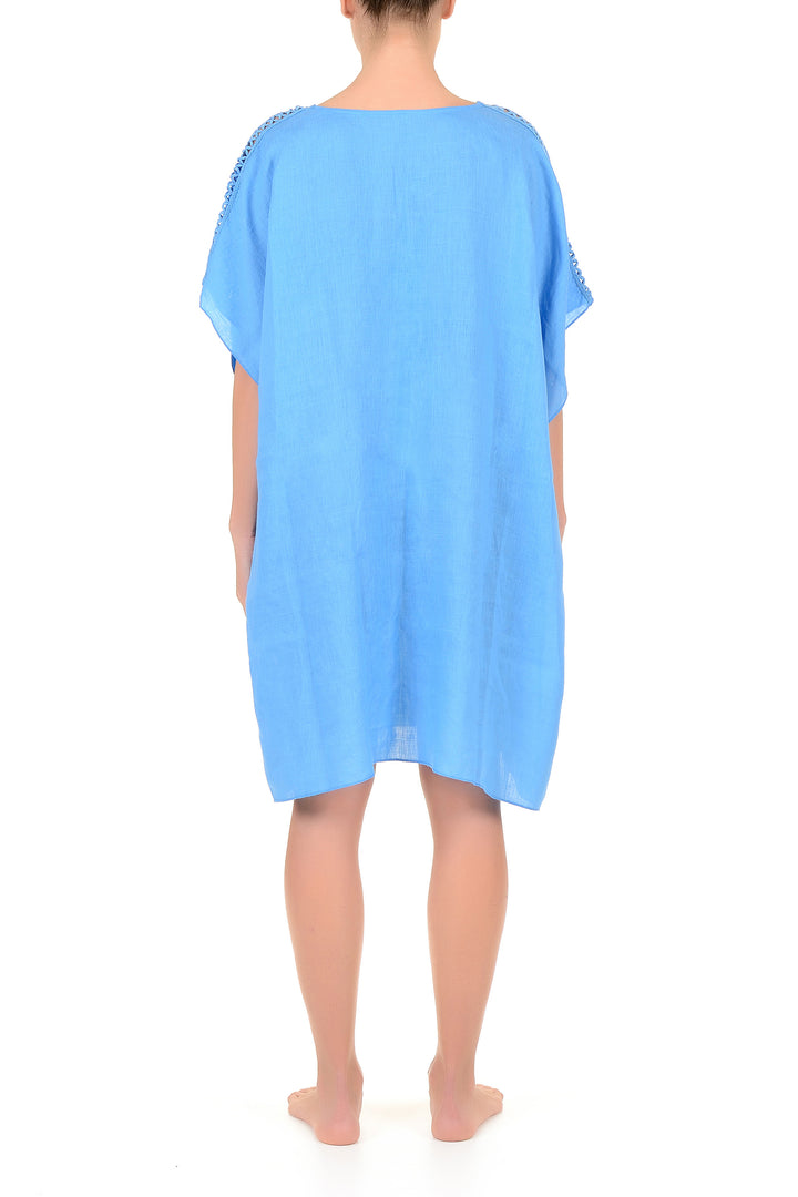 Este caftán de lino puro con escote adornado con delicados bordados garantiza ligereza y transpirabilidad ideales para la temporada de verano. El diseño fluido y sin restricciones asegura comodidad durante todo el día, mientras que la calidad del material natural lo convierte en una elección consciente y duradera en el tiempo. Perfecto para quienes buscan elegancia sin compromisos.