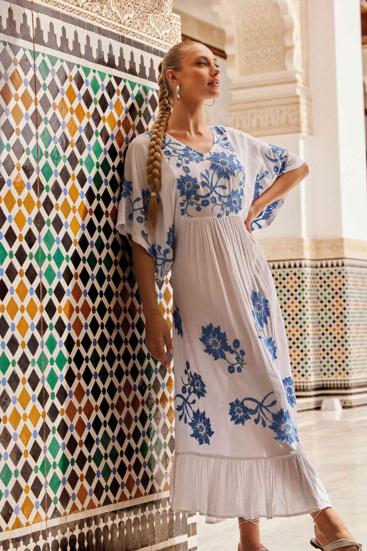 Explora la elegancia y el lujo con nuestro caftán largo Mila. Este modelo presenta un escote en pico que enfatiza la silueta, combinado con una cintura vita que ofrece un ajuste perfecto. Las mangas de murciélago y la falda amplia con balza añaden un toque de feminidad y sofisticación. Disfruta de un look exclusivo y atemporal con nuestro caftán Mila.