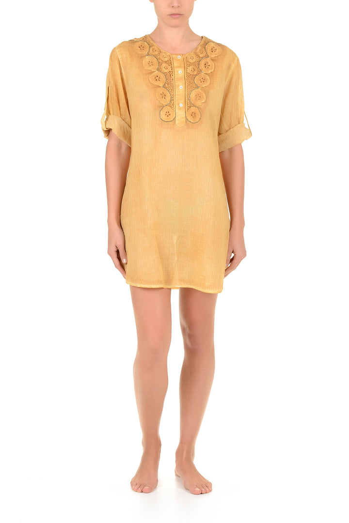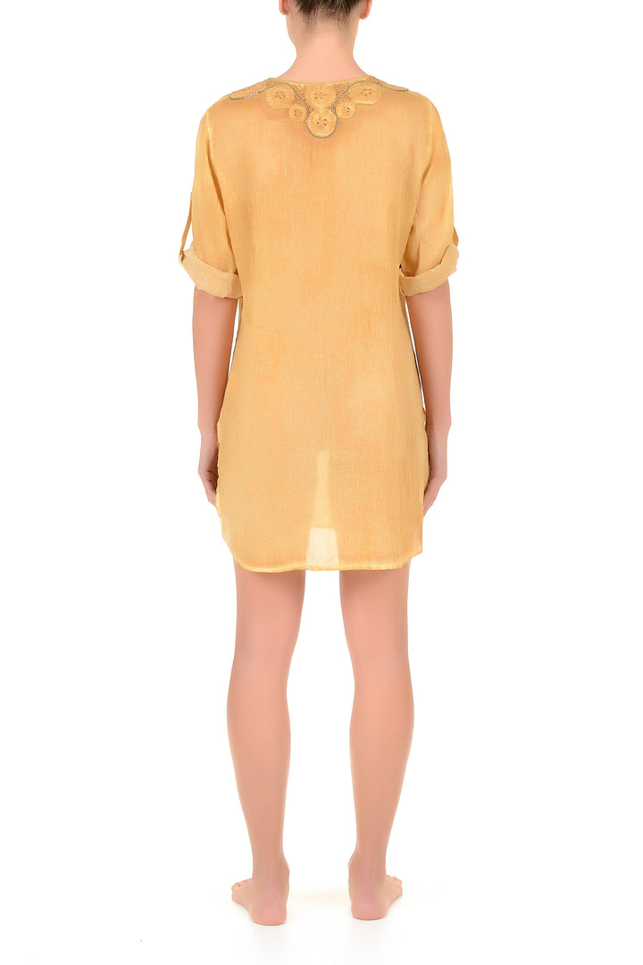 Este caftán de algodón puro con aberturas laterales es perfecto para quienes buscan comodidad y elegancia sin compromisos. El tejido garantiza una transpiración óptima y suavidad sobre la piel, ideal para los días de verano o para unas vacaciones en la playa. La silueta fluida con detalles laterales asegura libertad de movimiento y un ajuste relajado que realza la figura. Una prenda versátil para usar en la playa o en la ciudad, fácilmente combinable con accesorios y calzado diverso.