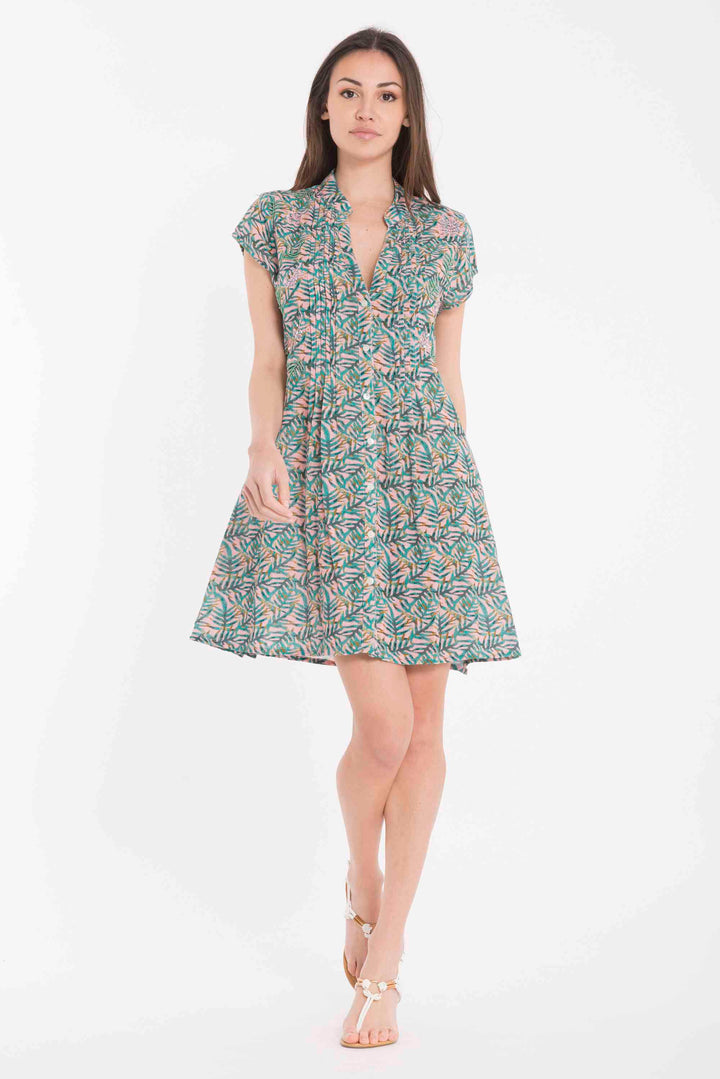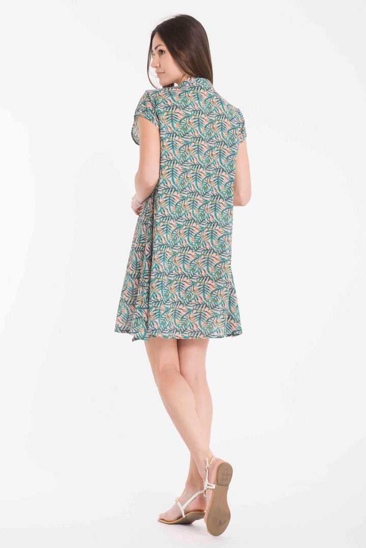 Caftán en puro algodón con mangas cortas y abotonadura frontal, perfecto para los días de verano en la playa o en la ciudad. La fantasía tropical captura la esencia de las vacaciones, mientras que el tejido natural garantiza transpirabilidad y comodidad incluso en las temperaturas más cálidas. Una prenda versátil que pasa sin esfuerzo de la playa a la cena informal, encarnando el estilo Mediterranean luxury con sencillez elegante.