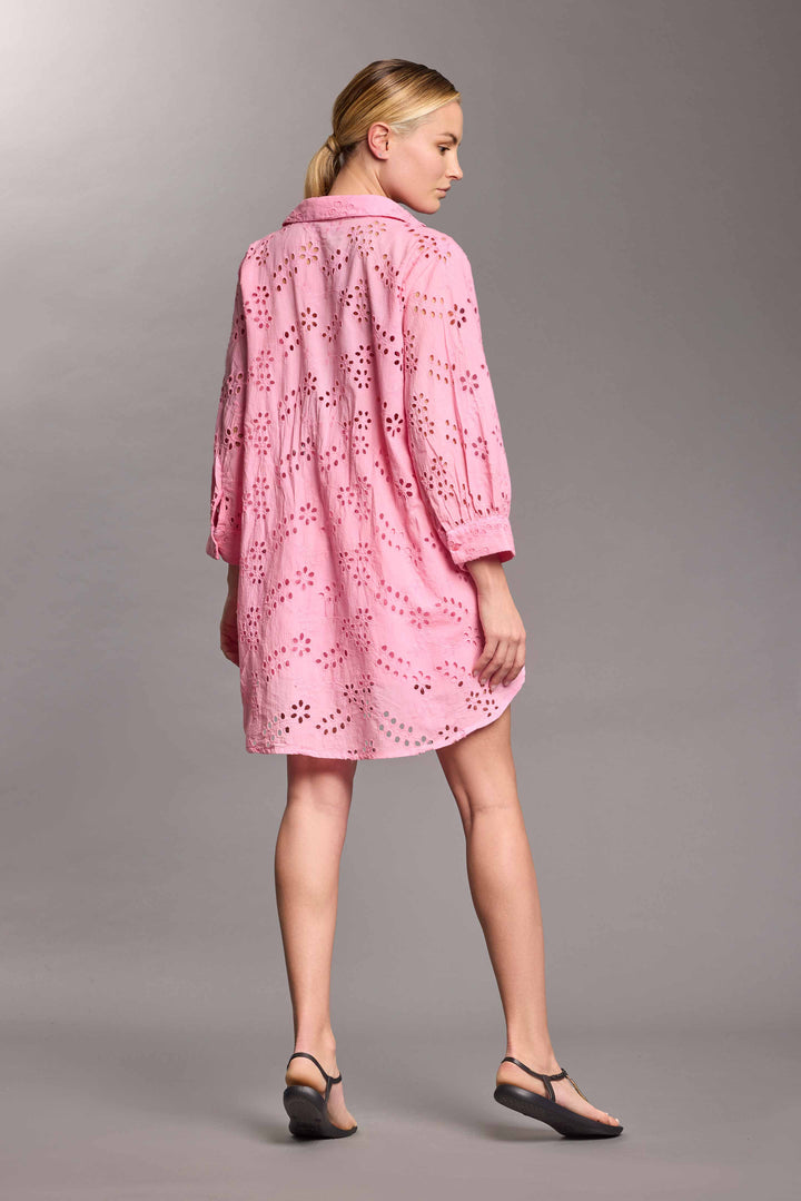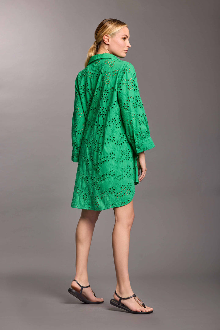 Realza tu estilo veraniego con la versátil y fresca camisa de encaje Paloma. El diseño largo y cómodo, en puro algodón, se adapta perfectamente a los looks de verano.