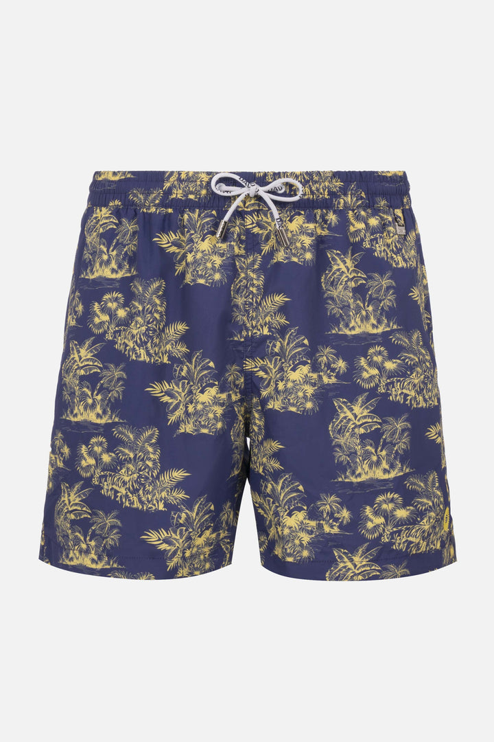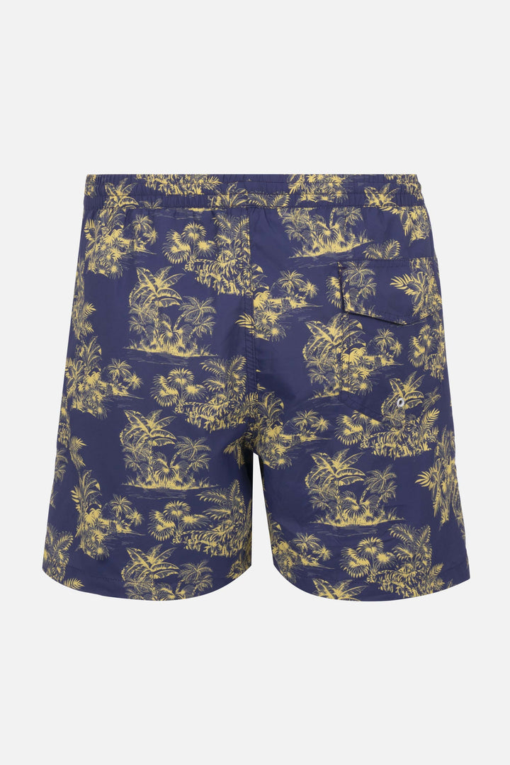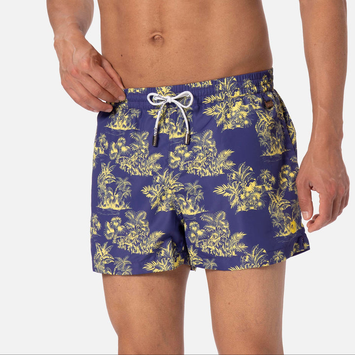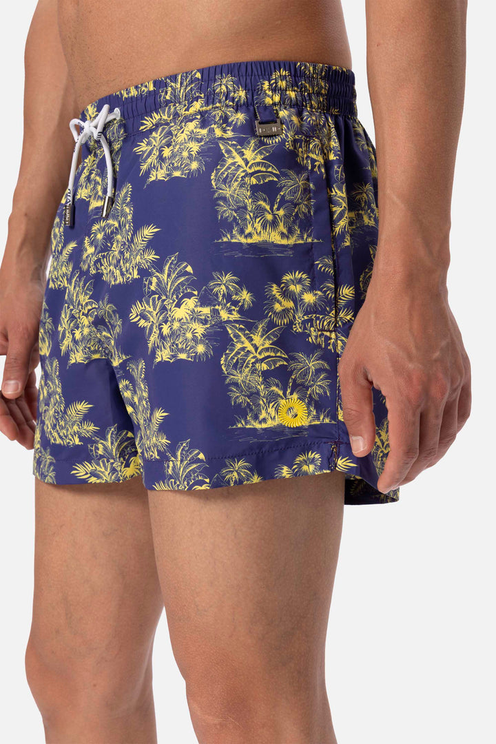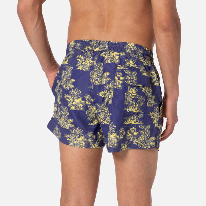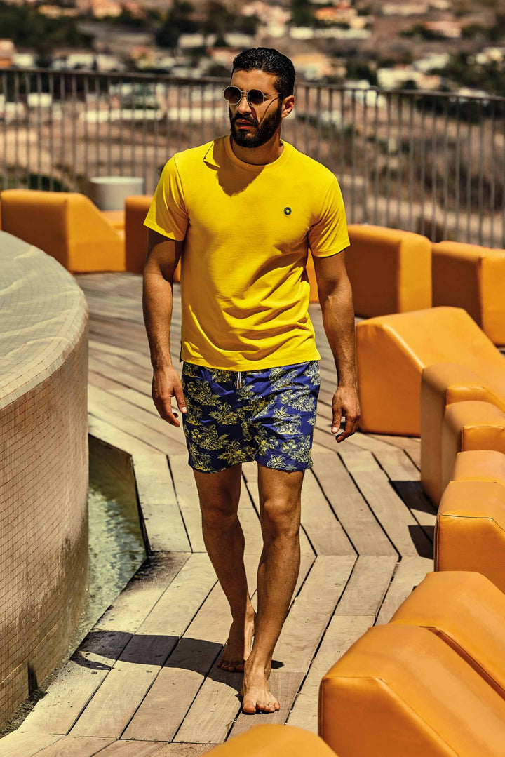 Prepárate para tus aventuras de verano con el estilo y la comodidad de nuestro bañador tipo boxer Eric. La fantasía tropical amarilla y azul es perfecta para hacerte destacar en la playa, mientras que el tejido técnico Soft Touch garantiza un ajuste cómodo y un secado rápido. Aprovecha los bolsillos laterales y el ajuste regulable con banda elástica para una experiencia sin preocupaciones.