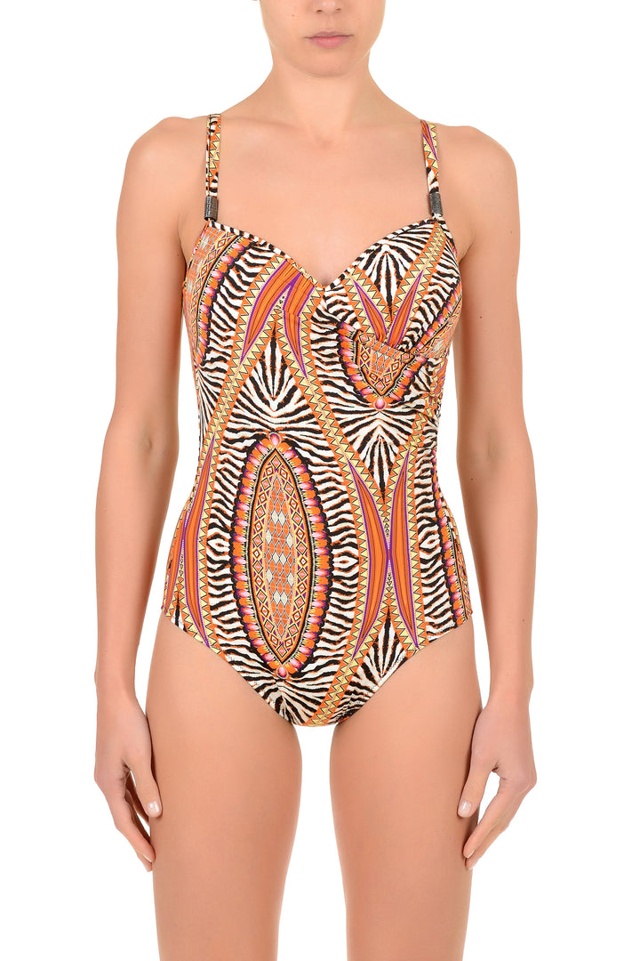 Este bañador entero con fantasía combina elegancia y comodidad gracias al tejido de calidad y al diseño cuidado. La fantasía viva realza la silueta, mientras que el corte ajustado asegura soporte y libertad de movimiento. Perfecto para quienes buscan un estilo distintivo y practicidad en una sola prenda de baño.
