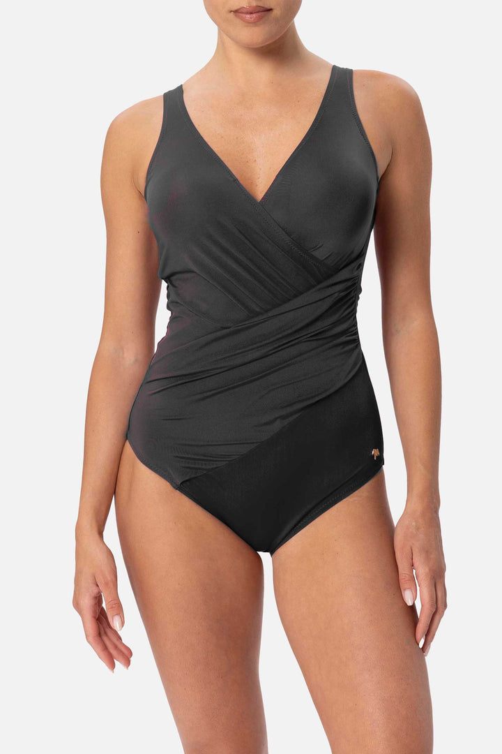 El traje de baño entero Mykonos ofrece comodidad y estilo gracias a su ajuste que realza cada figura. Realizado con tejido elástico moldeador, presenta copas acolchadas, tirantes fijos y escote en V. Perfecto para quienes buscan un look impecable en la playa o en la piscina.