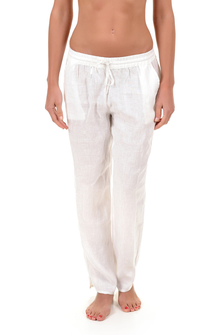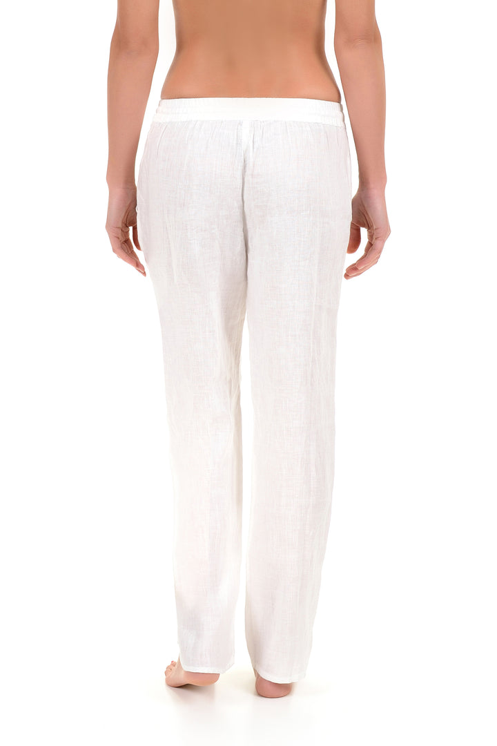 Hechos de lino transpirable, estos pantalones blancos cuentan con una cómoda banda elástica en cintura para un ajuste seguro pero flexible. El diseño atemporal y la tela ligera los convierten en una excelente opción para climas cálidos, ofreciendo estilo y comodidad gracias a una sastrería impecable.