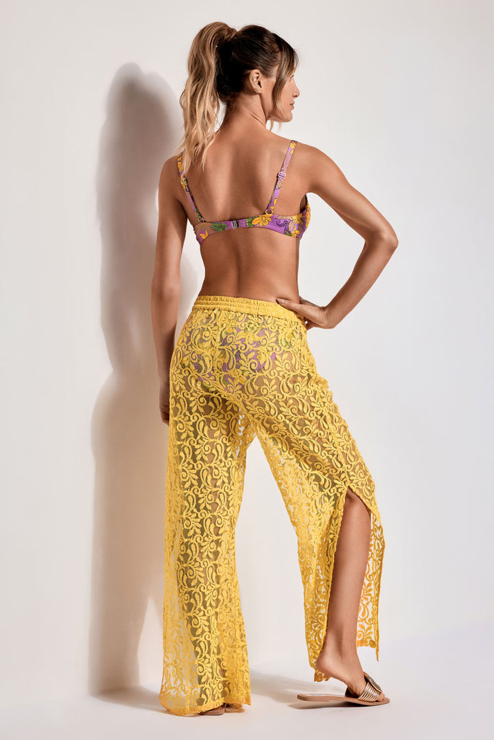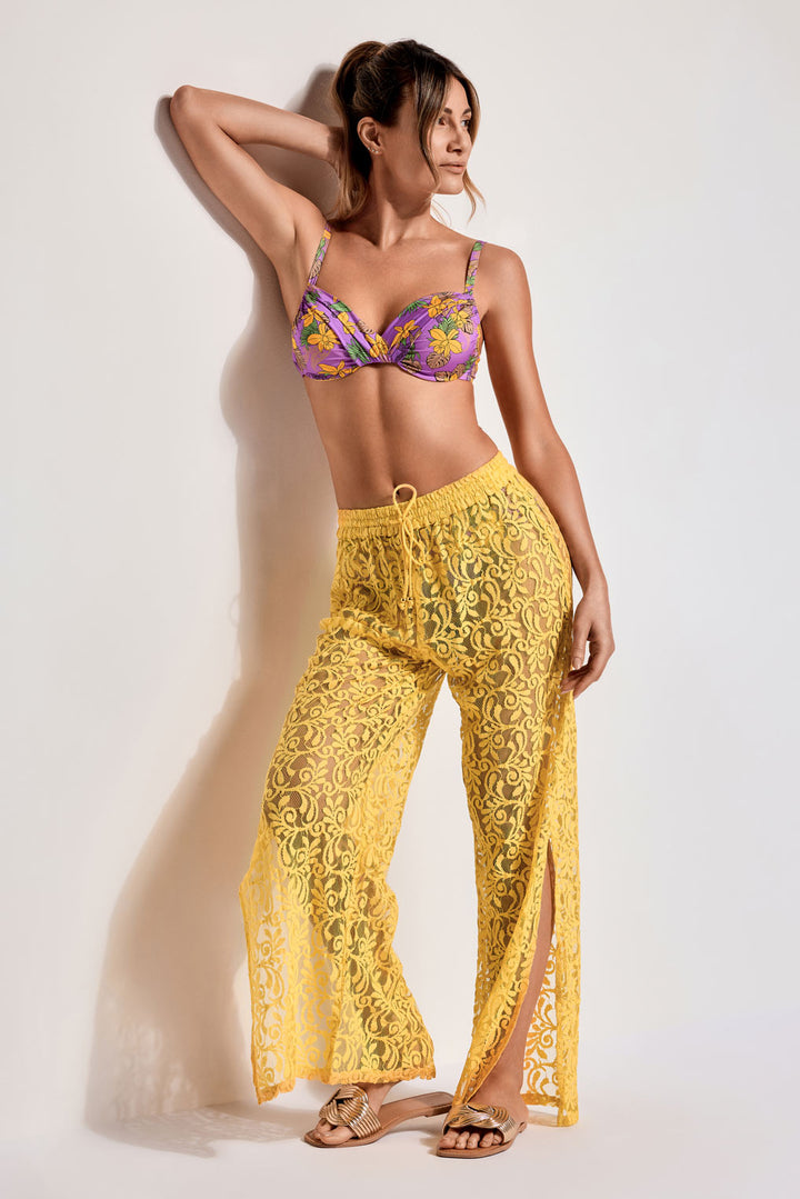 Estos pantalones de encaje son una opción atrevida y femenina para tu guardarropa. Gracias al tejido ligero y transpirable serán perfectas para los días más calurosos. La cintura vita permite regular el calce, mientras que las aberturas laterales añaden un toque de sensualidad.