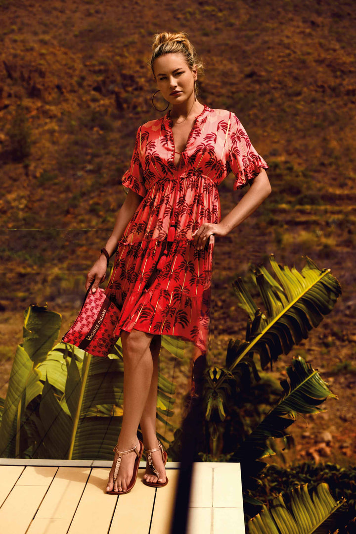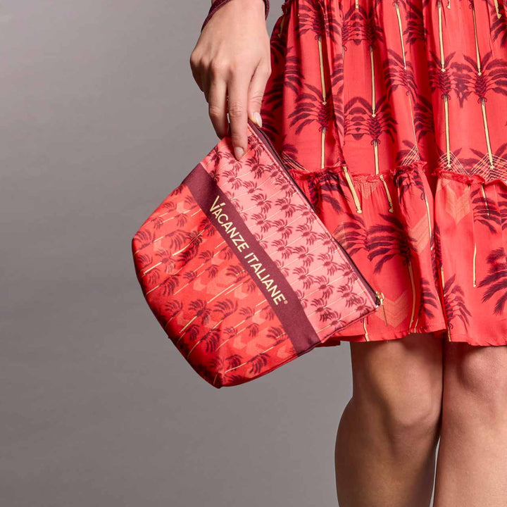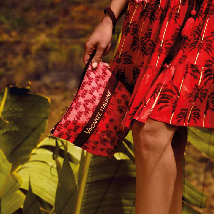 La bolsa Alma es el accesorio perfecto para llevar tus objetos esenciales con estilo durante tus días de verano. Gracias a su estampado tropical vibrante, es perfecta para cualquier ocasión. Además, su ligereza y resistencia la hacen ideal para los viajes y el uso diario. Con su cómoda cierre de cremallera, puedes estar tranquilo/a de que tus objetos estarán a salvo.