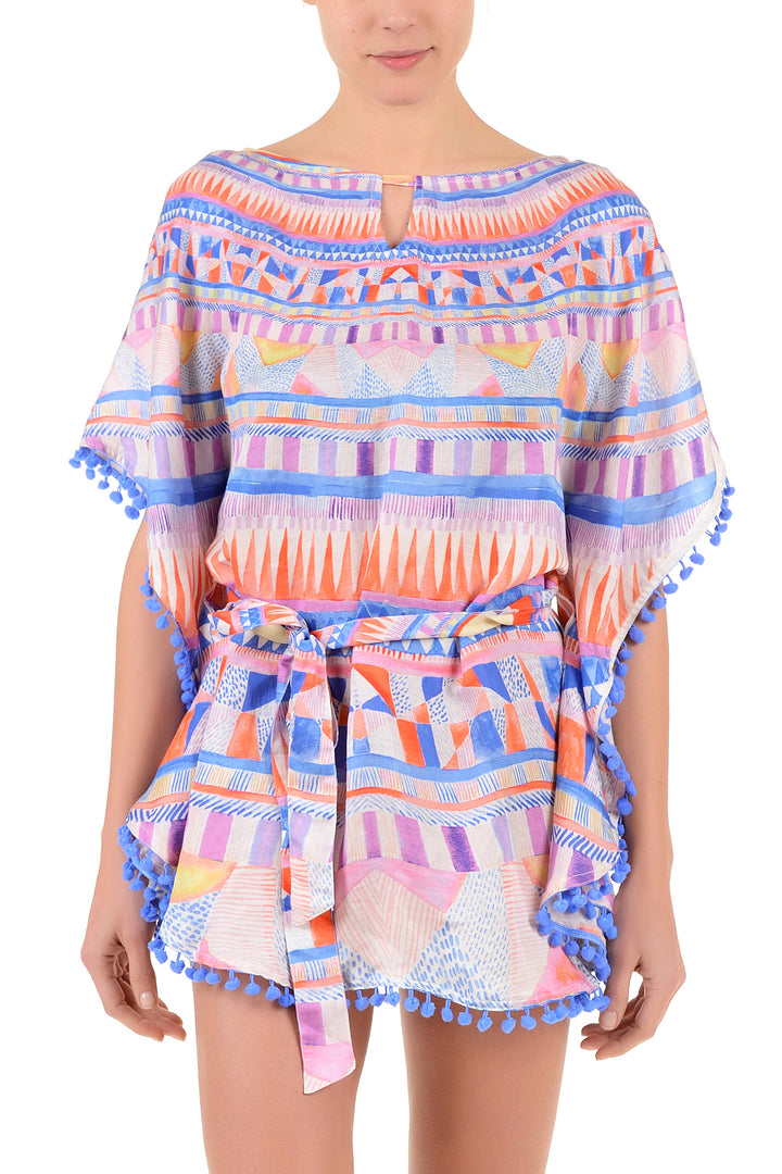 Este elegante poncho presenta una cintura en la cintura que define la silueta con facilidad. Confeccionado con un motivo distintivo, añade un toque sofisticado a cualquier conjunto, ofreciendo al mismo tiempo una cobertura cómoda.