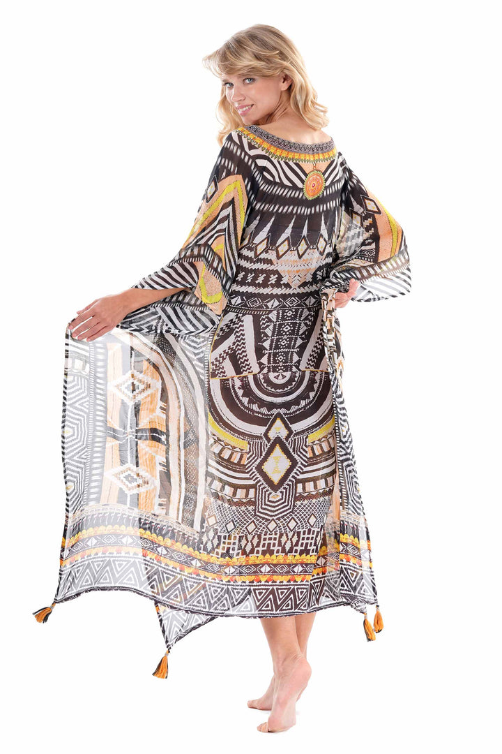 Este elegante poncho largo presenta delicados flecos a lo largo del dobladillo y aberturas laterales para mayor movimiento y comodidad. El escote en V realza la silueta, convirtiéndolo en una prenda versátil que combina estilo y facilidad de uso.