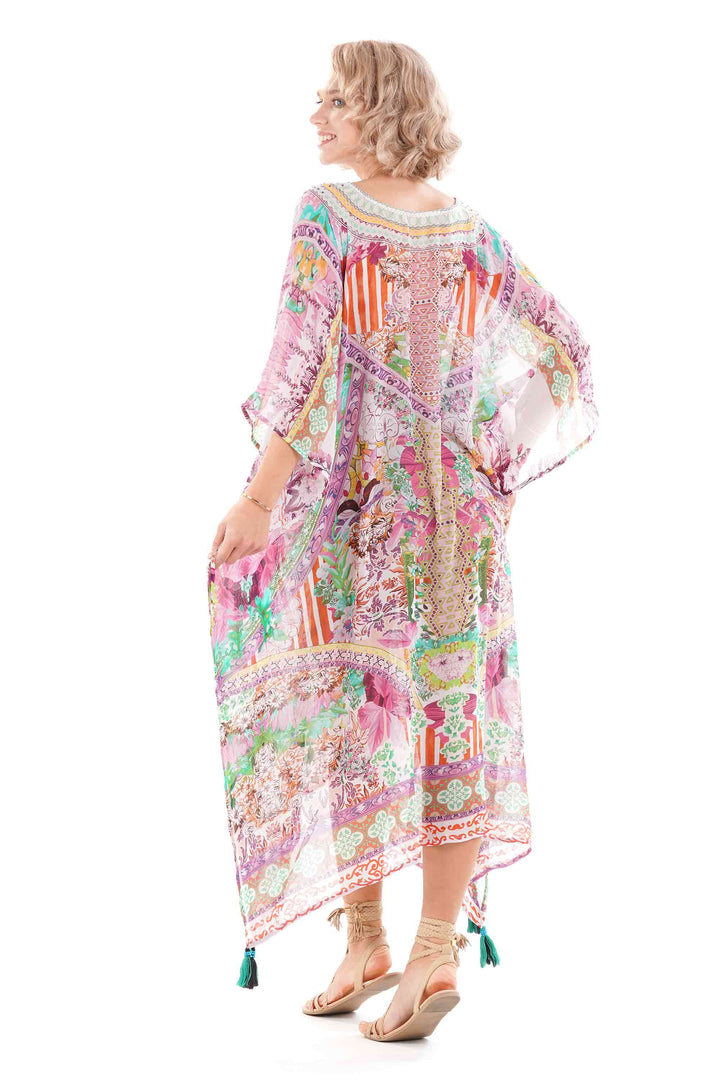 Este poncho largo presenta un encantador fantasía étnico que evoca culturas lejanas. El dobladillo está adornado con elegantes aplicaciones de borlas que añaden movimiento y carácter a la prenda. Un accesorio versátil que aporta un toque distintivo y sofisticado a cualquier conjunto.