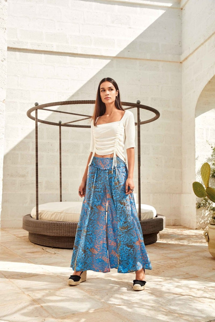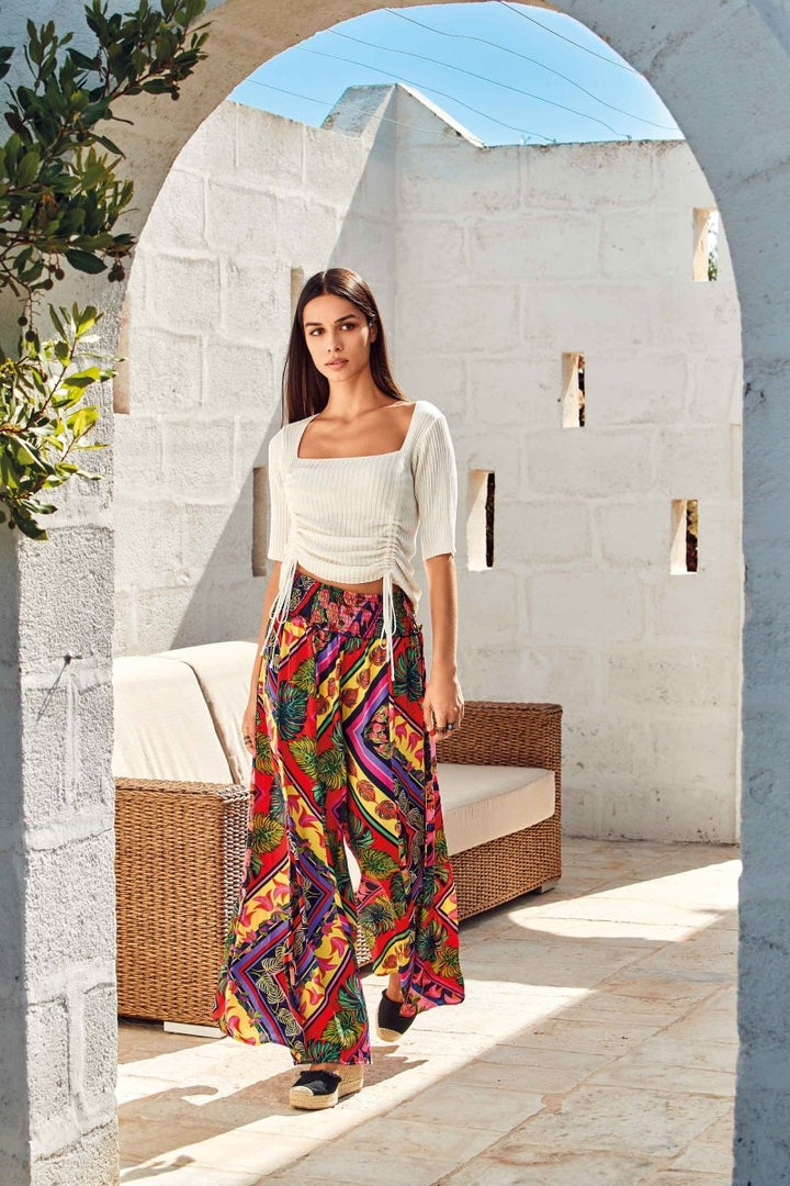 Top de suave tejido de punto, con prácticas mangas cortas y longitud ajustable gracias a los lazos laterales. Una prenda versátil que se adapta a diversas ocasiones, ofreciendo comodidad y estilo. Perfecto para un look casual y dinámico.